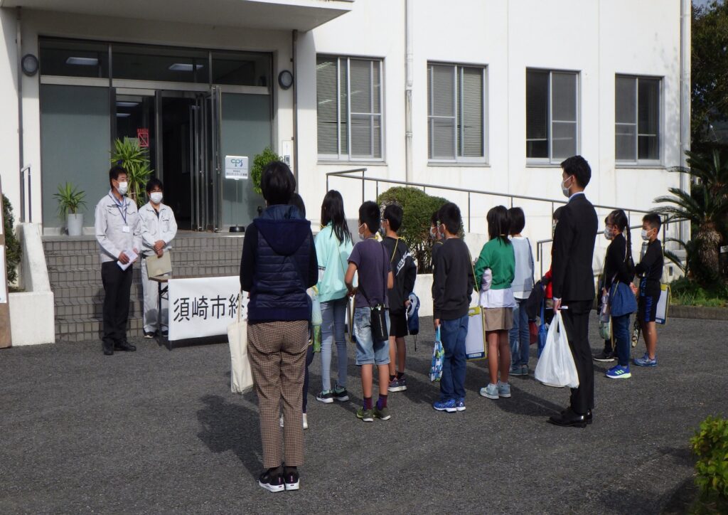 終末処理場及び場内の雨水ポンプ場において、浦ノ内小学校4年生の社会科見学会が行われました。見学に訪れたのは、生徒13人、先生2人です。