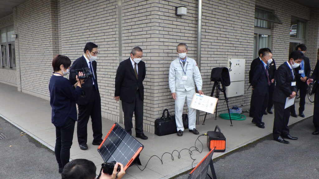 このような事態を避けるためにも、有事の際には、避難所の直ぐ横のマンホール上に直接設置可能なマンホールトイレをご利用頂ければと思います。また、避難者の方が待機場所において、携帯電話の充電やお湯を沸かしたりする上で役立つ、ポータブル電源も有効であると思われます。