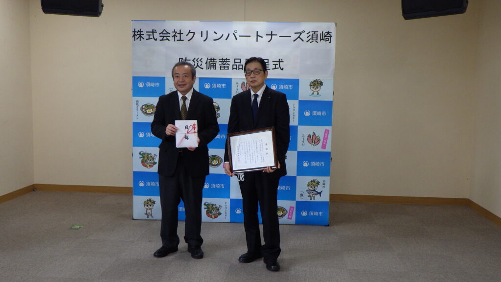 (株)クリンパートナーズ須崎では、地域貢献の一環として、下水道事業に関連することで、地震等の被災時に市民の方に貢献できる方策はないかと検討を行ってきました。検討の結果、地震や津波の被災時に避難所において役立つ備品として、マンホールトイレ、ポータブル電源ソーラーパネルセット等を市に寄贈致しました。